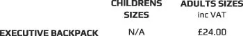 The Executive Backpack is available in one size only - 50cm x 35cm x 15cm